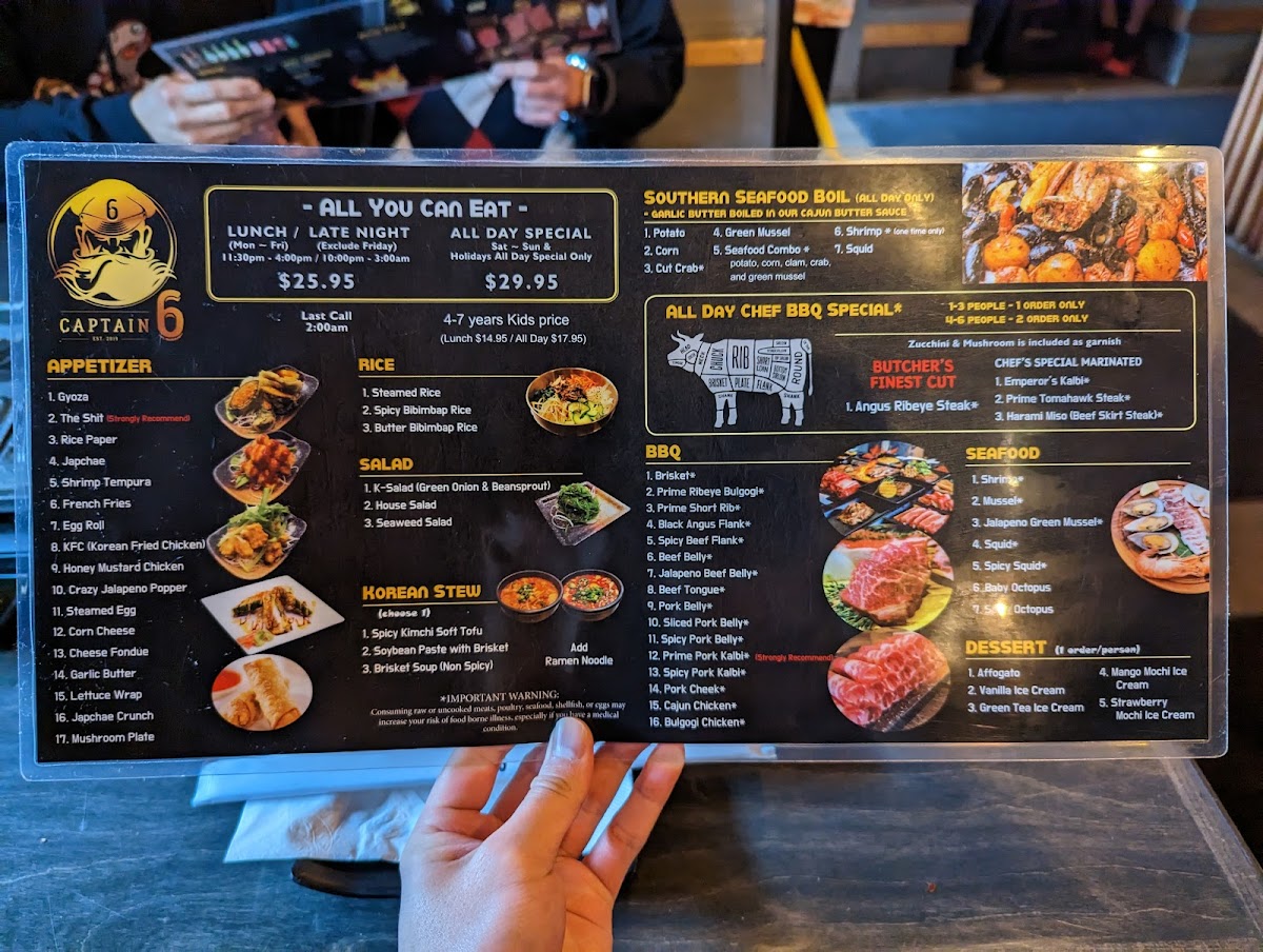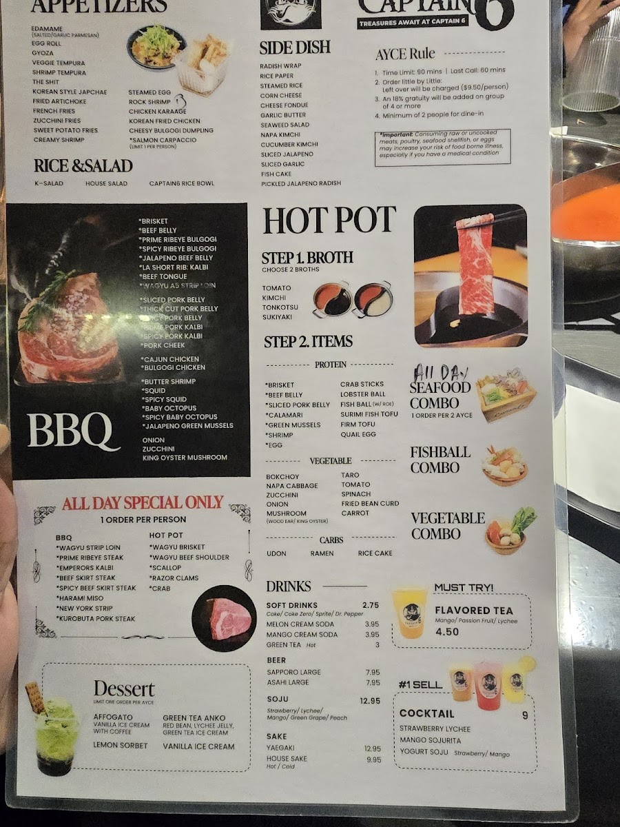 Welcome to Captain 6, where culinary delight meets an immersive dining experience. Specializing in both hotpot and Korean BBQ, Captain 6 offers a tantalizing menu that keeps diners coming back for more. For just $33, indulge in a 90-minute feast featuring an array of high-quality meats like sliced beef brisket, pork belly, and an enticing seafood combo.